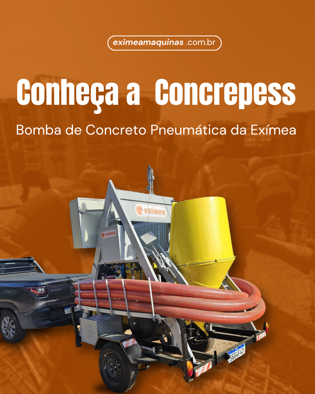 Dados Técnicos da Bomba de Concreto Concrepress 1- Facilmente posicionado no canteiro de obras devido ao seu designe otimizado. 2- Operacional fácil e 100% seguro (NR12/NR10) 3- Bombeamento de até 2m³/hora com poucos trabalhadores (4 ou 5 no máximo) 4- Alcance horizontal de até 40m 5- Alcance vertical de até 9m (equivalente a 3 lajes) 6- Opera com suporte de 2 ou 3 betoneiras 400 L (cliente) 7- Tensão de trabalho 220V (residencial bifásica – 7,5 KW) 8- Necessário uso de aditivos para concreto bombeável (fornecido extra locação).